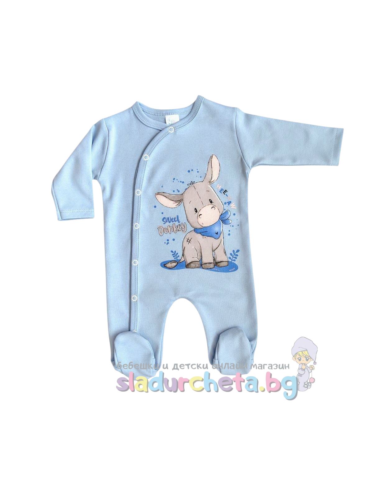 Гащеризонът е с дълъг ръкав в син цвят с апликация на магаренце;