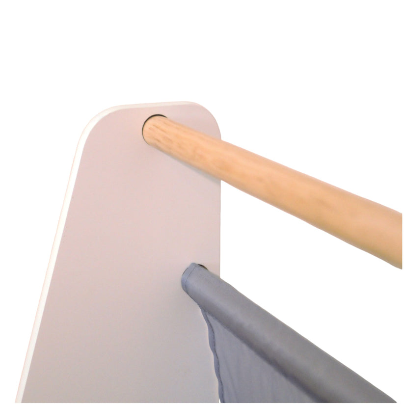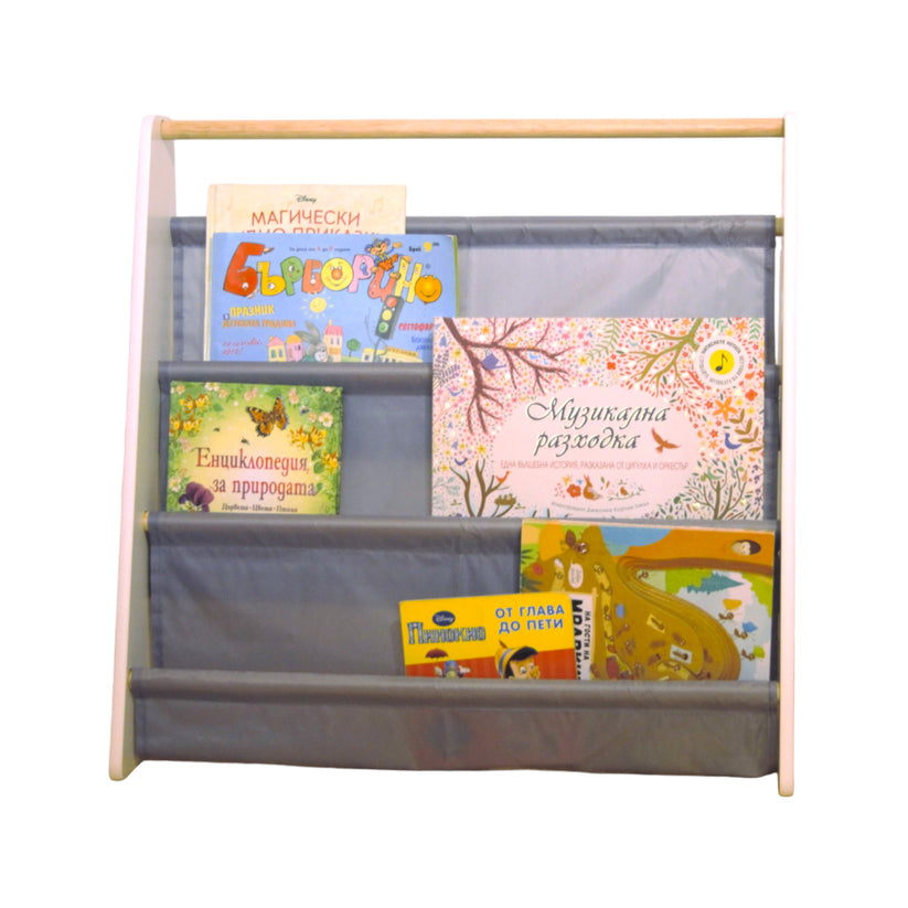 Със своите изчистени линии и модерен дизайн в бяло и сиво, преносимата етажерка лесно се вписва във всяка детска стая, добавяйки нотка елегантност и ред;