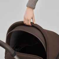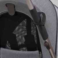Въздухопропускливият сенник, изработен от плат, обогатен с UV филтър, предпазва бебето от пряка слънчева светлина и други външни фактори;