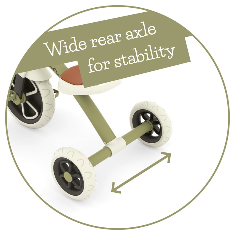 • Здравата рамка на триколката и не плъзгащите се педали осигуряват стабилност и увереност на младите изследователи;