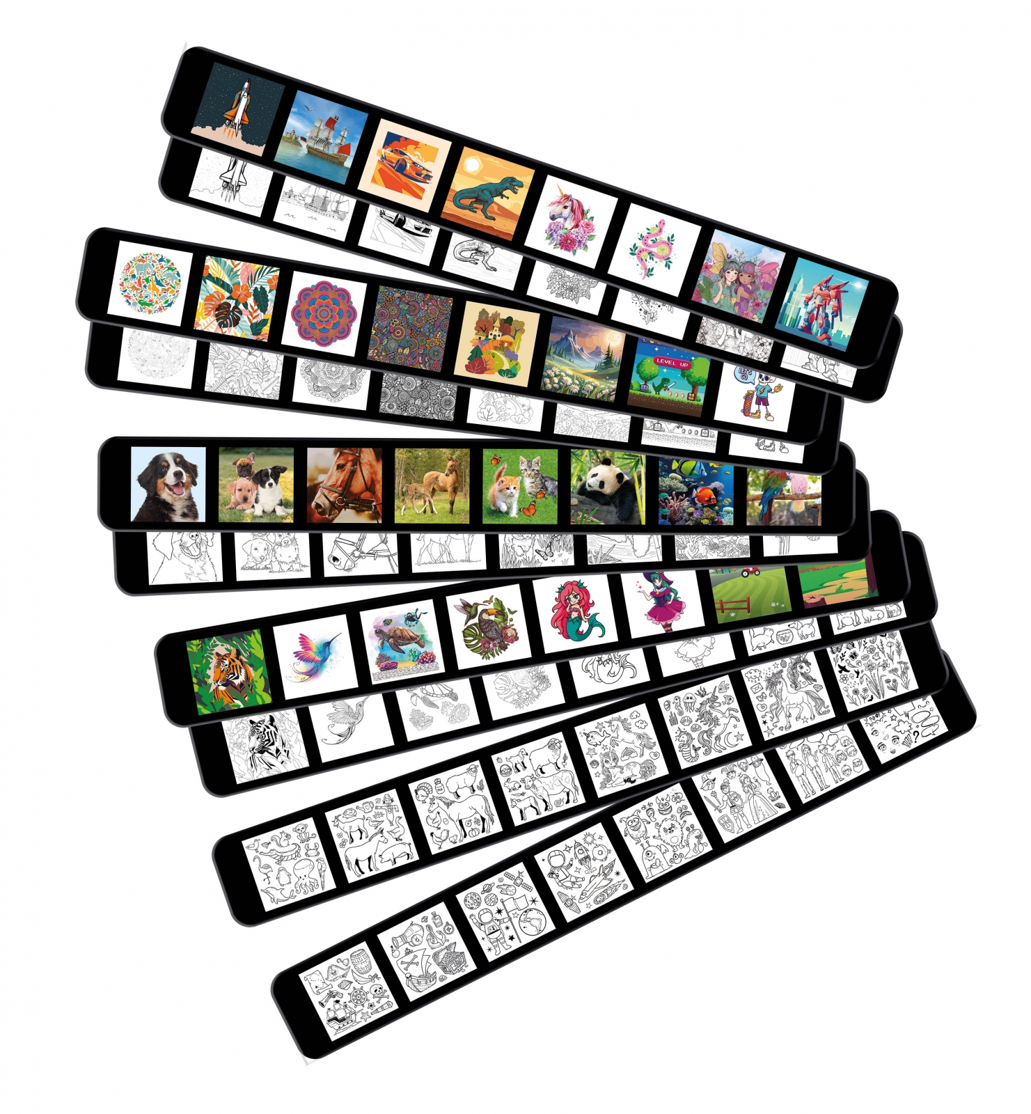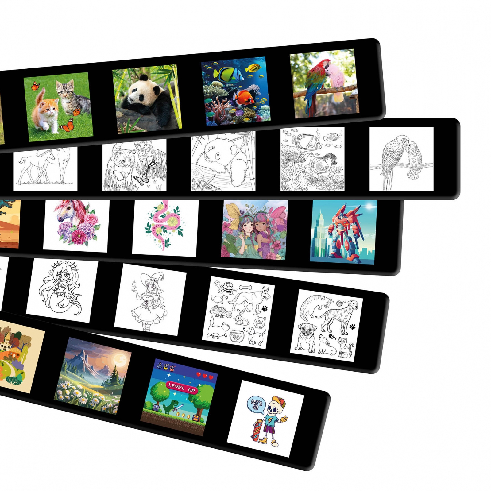 Комплекта включва: 30 изображения и 200 дизайна, както и цветни моливи, фулмастери, и други аксесоари;