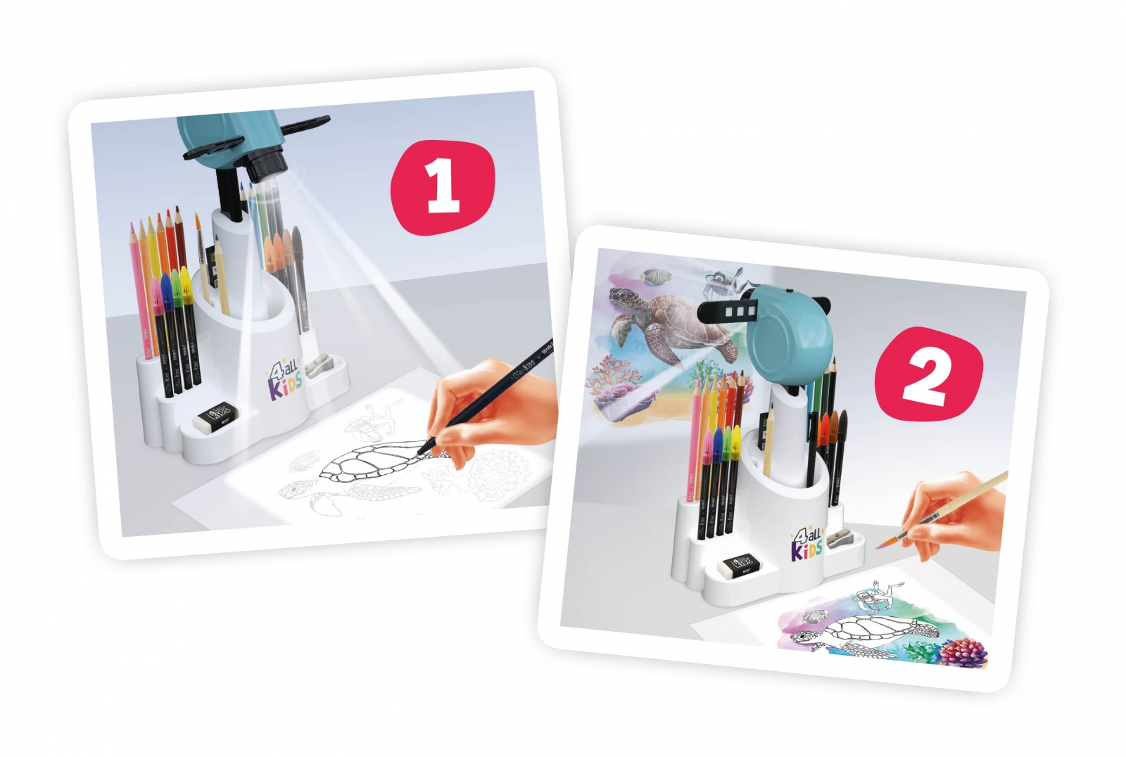 Прожектирайте черно-бялото изображение върху лист хартия, за да очертаете контурите му, а след това и цветното изображение, за да ви помогне да оцветите;