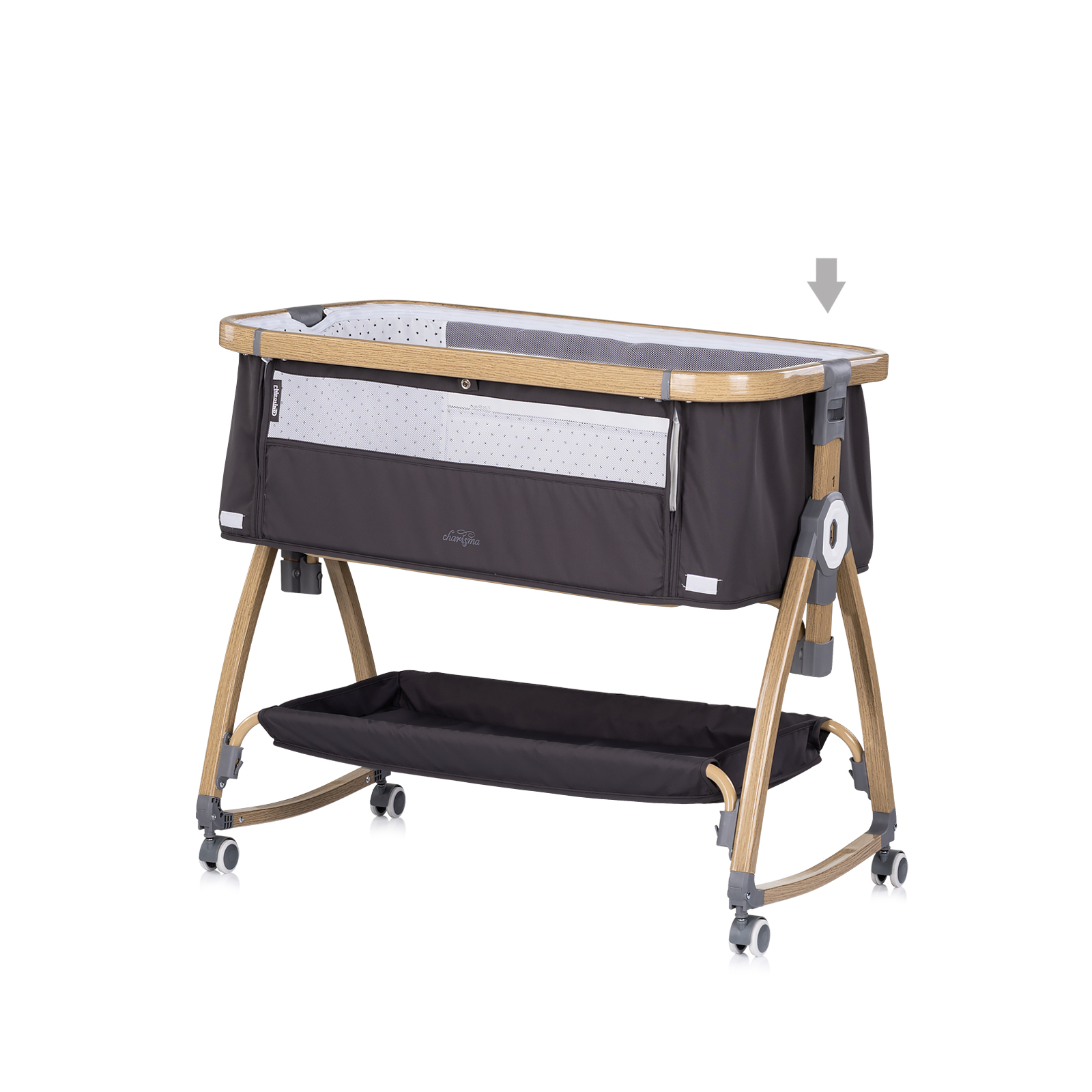 Регулируемата падаща страна позволява лесно и сигурно прикрепяне към леглото на родителите;