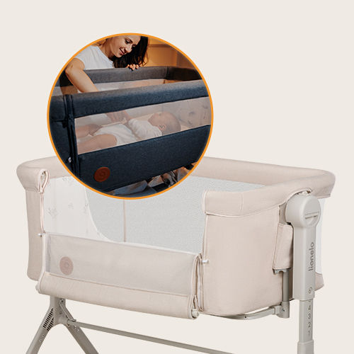 Mожe лесно да се свърже с леглото на родителите като кошара тип next to me (подходящо и за континентални легла);