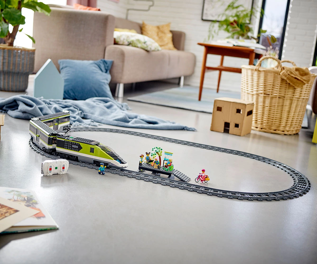 Включва 24 части за релси – LEGO® City Пътнически влак експрес се предоставя с 16 извити и 8 прави части за релси;