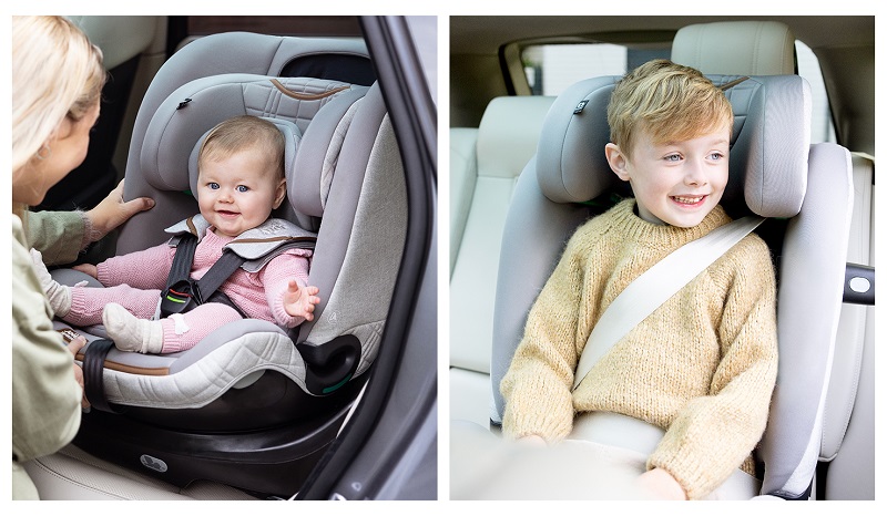 5-точковият колан се настройва без усилие за персонализирано прилягане, поддържайки детето Ви правилно и удобно позиционирано, когато се вози назад, със или без вложката за бебета от раждането до 4 години (40-105 см височина) и с лице напред от 15 месеца до 4 години (76-105 см височина);