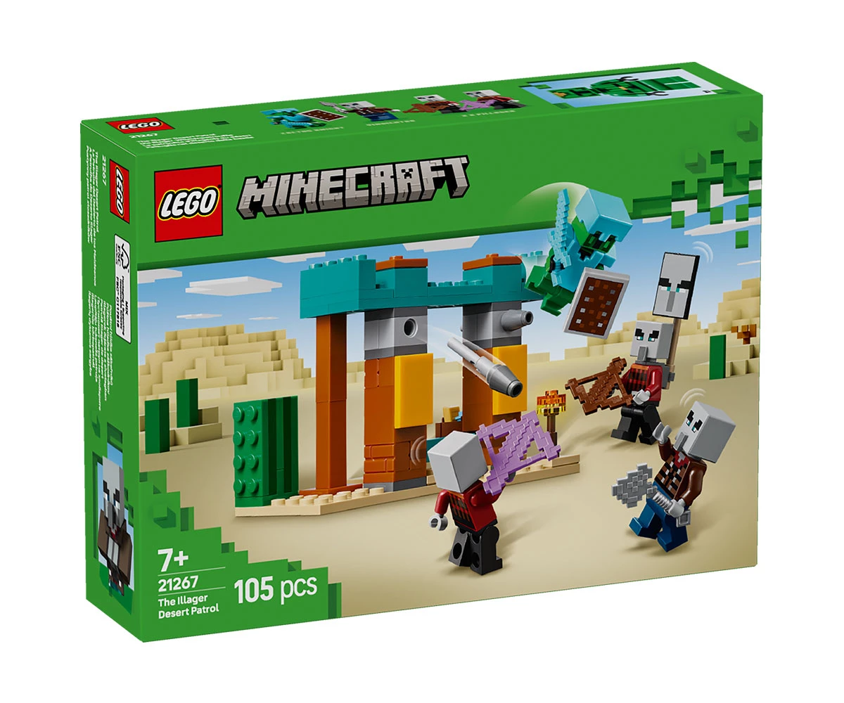 Пустинен екшън с LEGO® Minecraft® – „Пустинният патрул на злобарите“ е изпълнена с екшън изненада за деца, която вдъхва живот на популярната видеоигра за момчета и момичета на възраст над 7 години;