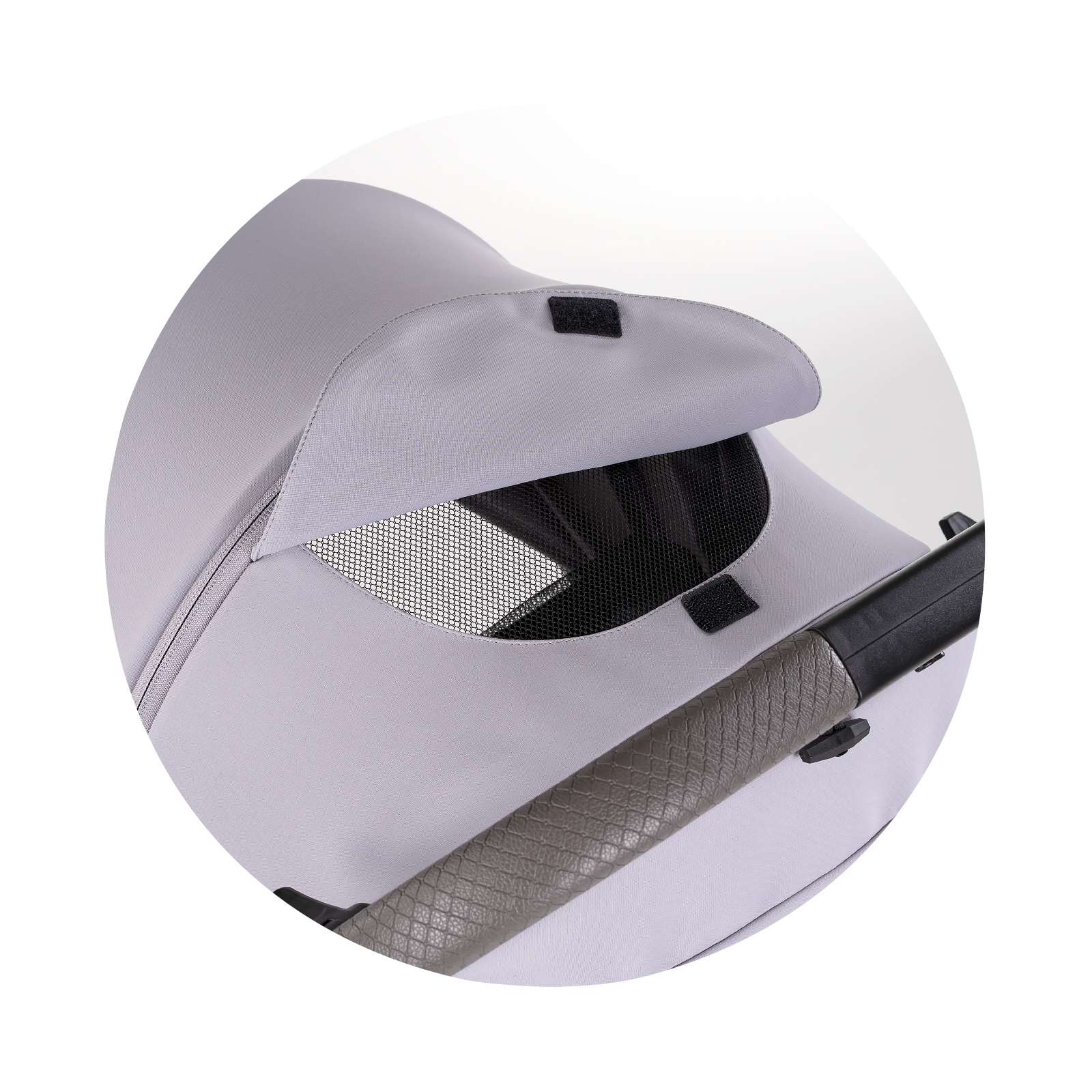 Големият сенник с UV защита и покривалото за крачета, включено в комплекта, предпазват бебето от вятър, дъжд и силно слънце – за спокойни разходки през цялата година;