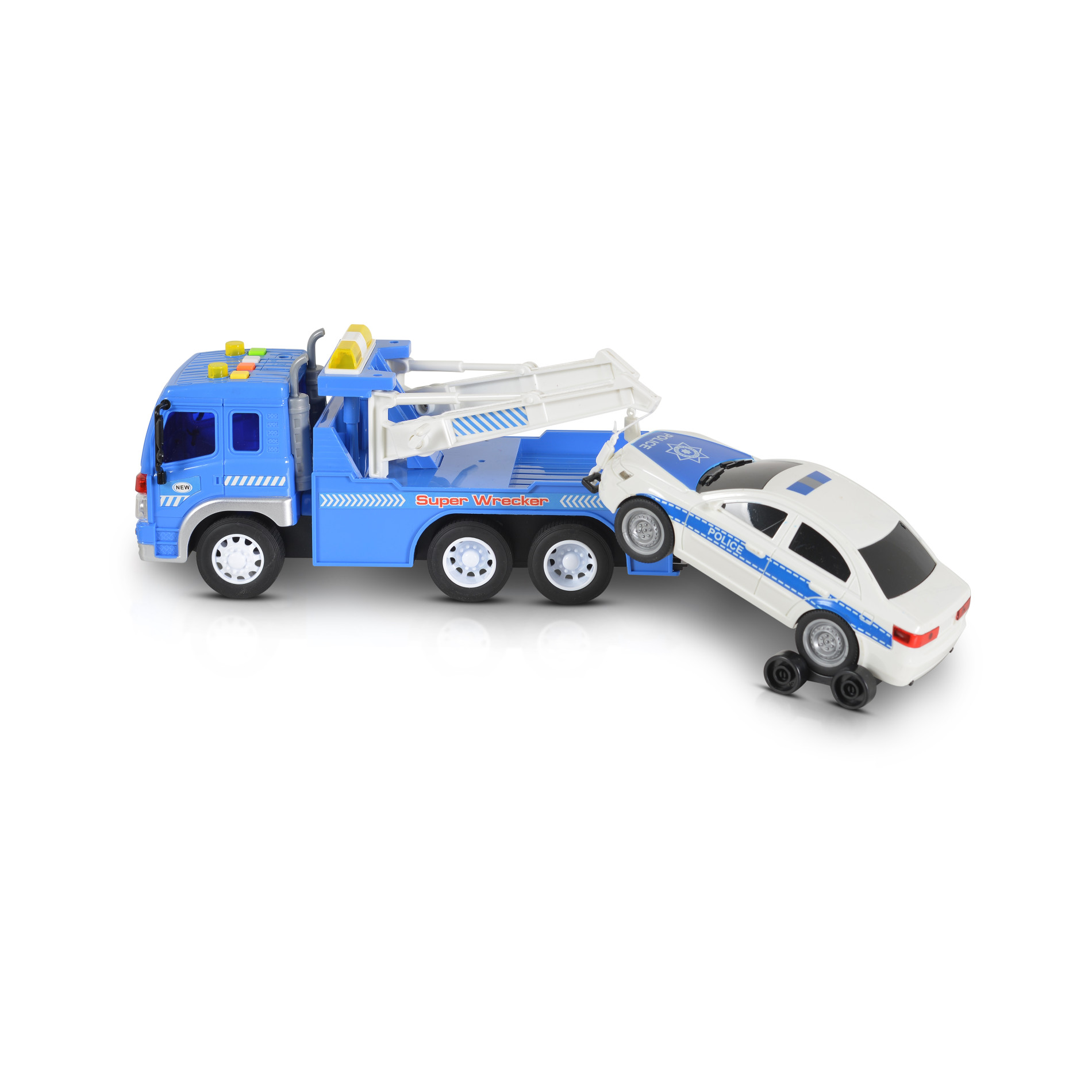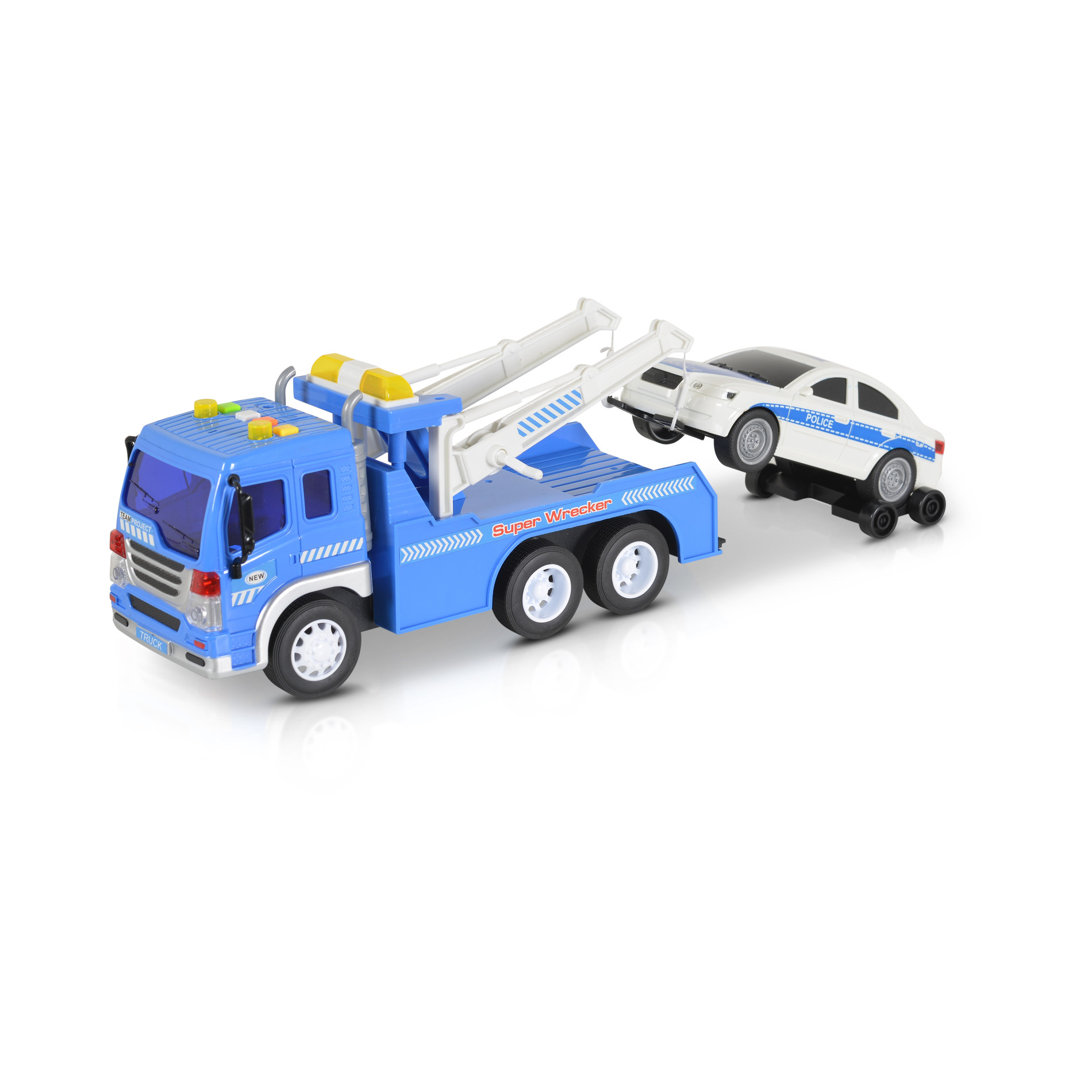 Комплектът включва репатрак и допълнителна кола, които позволяват на децата да разиграват различни пътни ситуации и стимулират въображението и координацията;