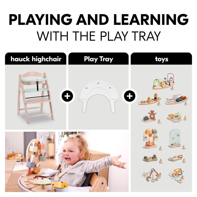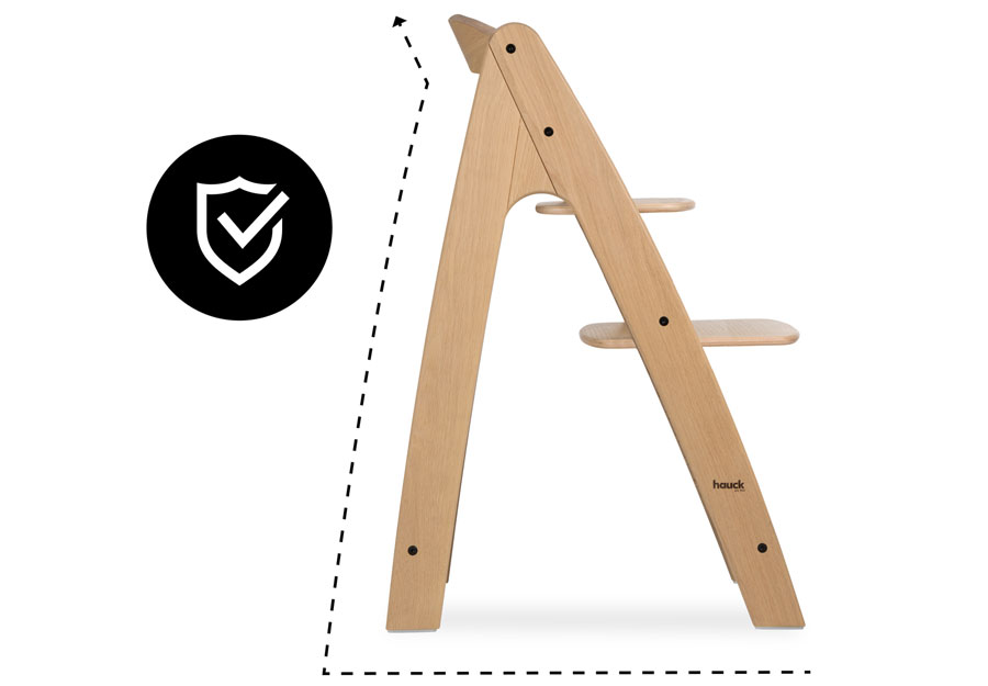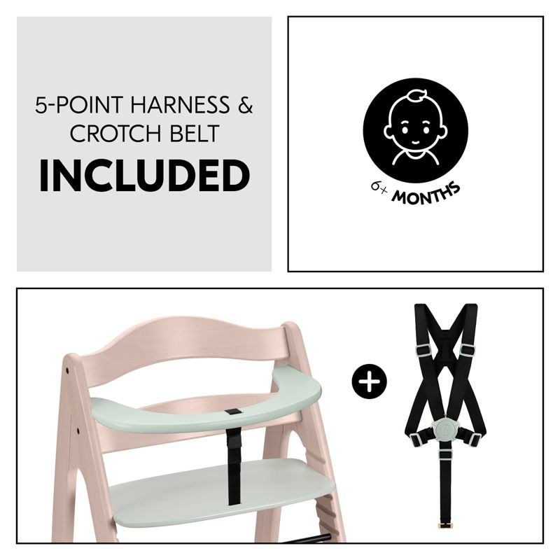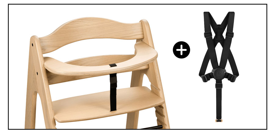 Включена предпазна каишка, 5-точков колан и борд предпазват вашето дете, така че можете да се насладите на спокойно хранене;