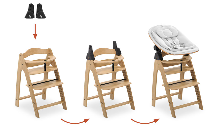 В комбинация с ергономичният шезлонг Bouncer Eco и адаптерите, столчето може да се ползва за деца от раждането (не са включени в комплекта);
