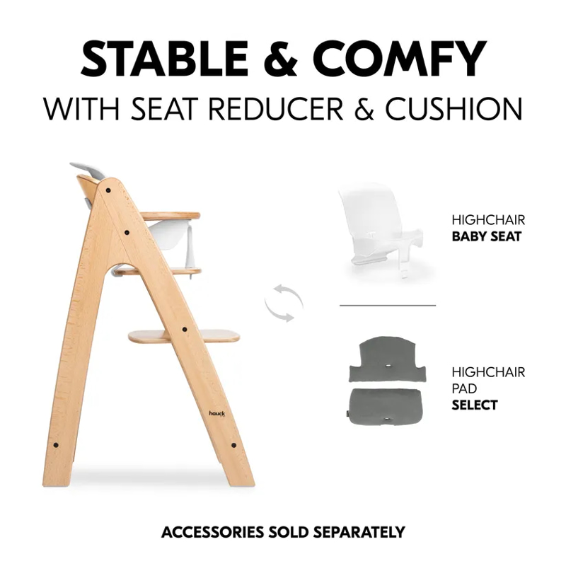 Дървено столче за хранене Hauck Arketa Beech, с Play Tray основа за играчки