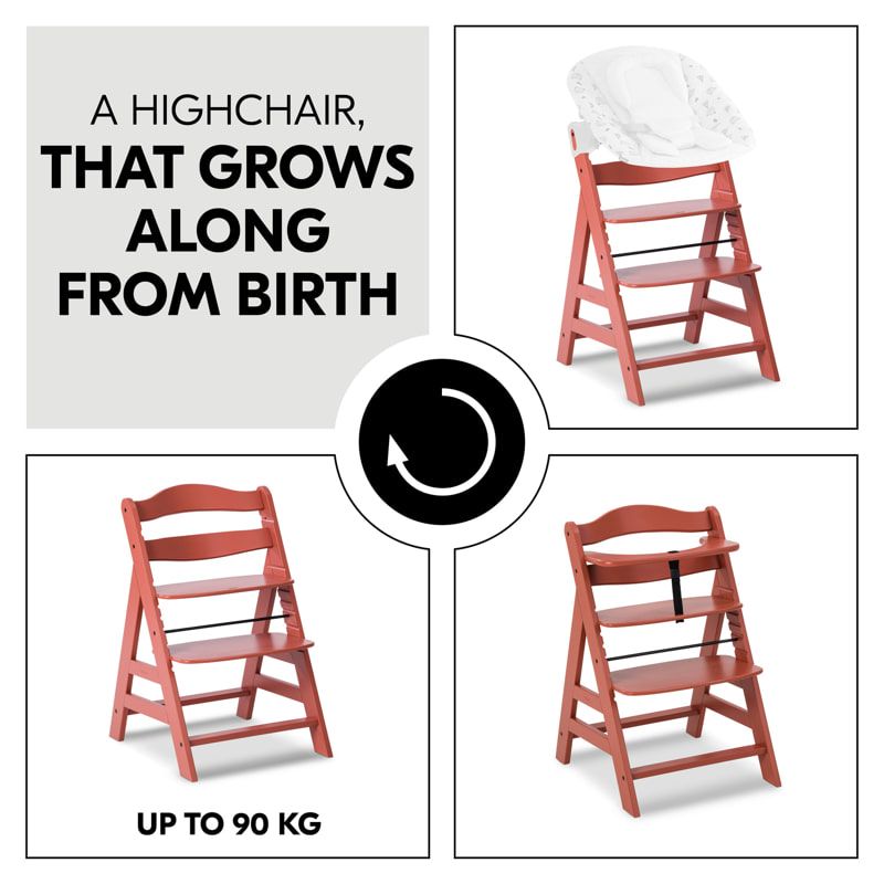 Имате възможност да го използвате от раждането на детето в комбинация с шезлонг Alpha /закупува се отделно/. По този начин бебчо ще може да "сяда" на масата заедно с цялото семейство, а вие ще можете да го наблюдавата по-лесно и удобно;