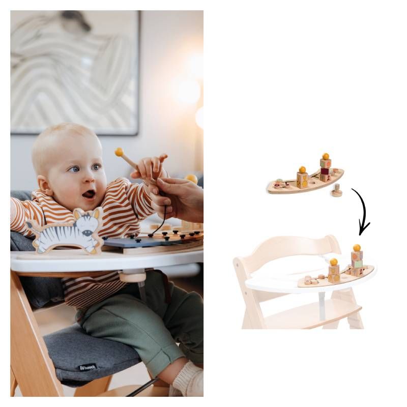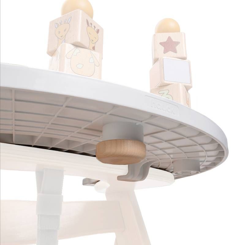 Върху таблата за хранене могат да се комбинират до две дървени играчки за столчета за хранене Hauck (всяка играчка се предлага отделно). ВАЖНО: Таблата за игра се предлага отделно и се различава от таблата за хранене;