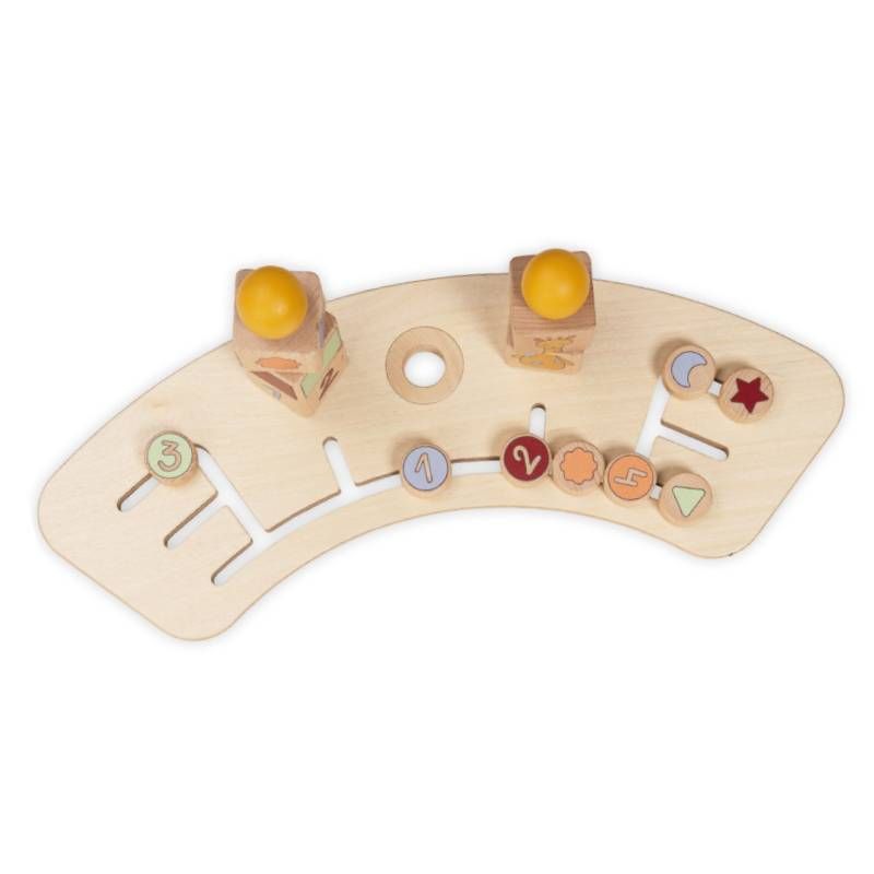 Докато бута различните елементи по осите, Вашето дете тренира логиката, визуалното възприятие на цветове и форми и фината моторика;