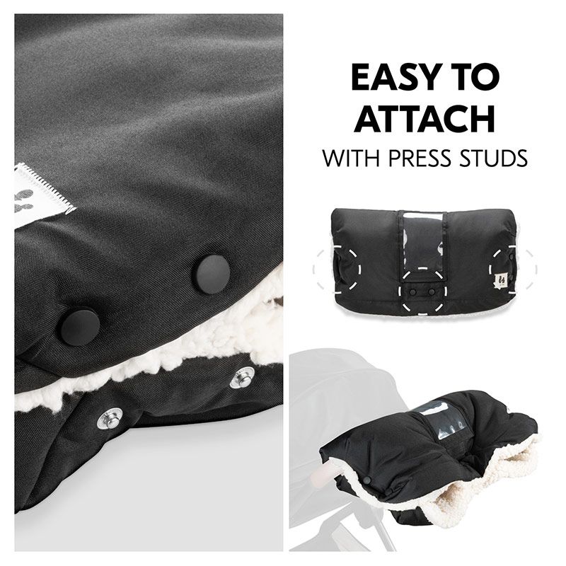 Лесна за закрепване с копчета: ръкавицата може лесно да се прикрепи и свали от дръжката на вашата бебешка количка с помощта на копчета отстрани и в средата;