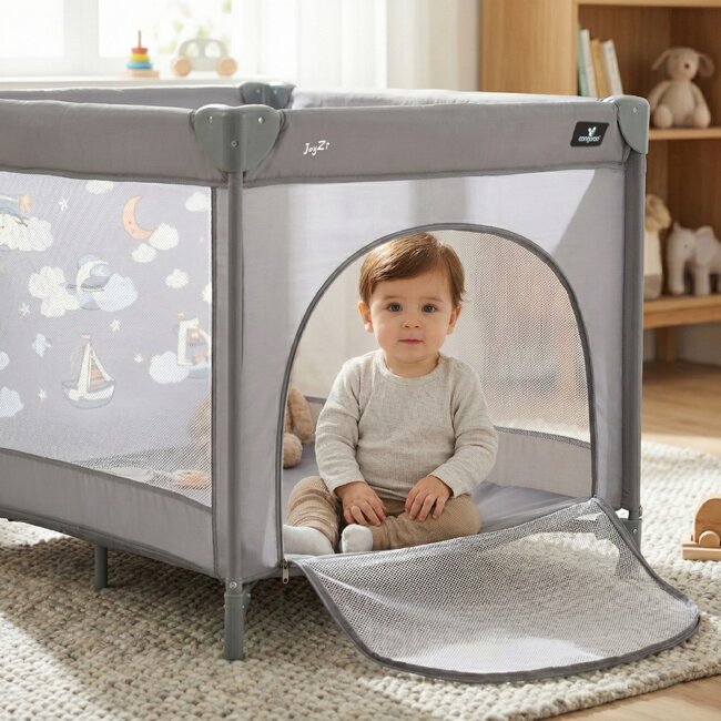 • Със стабилната си конструкция и функционален дизайн тя осигурява сигурна и комфортна среда за детето, докато родителите запазват спокойствие;
