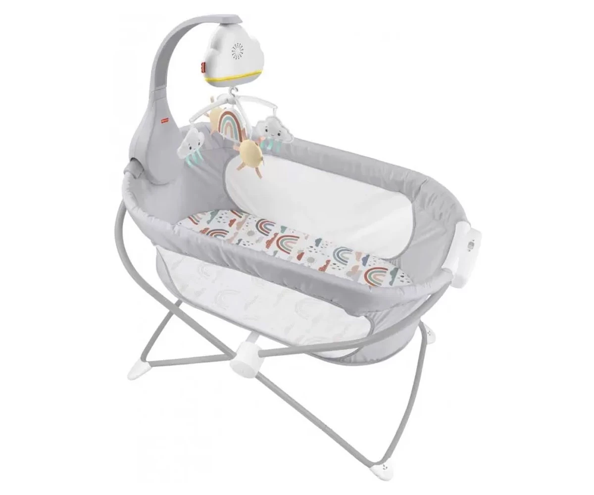 Музикалната въртележка има ослепителни играчки облаци и слънце и 20-минутен плейлист, за да помогне на вашето новородено да се отпусне в сладки сънища;