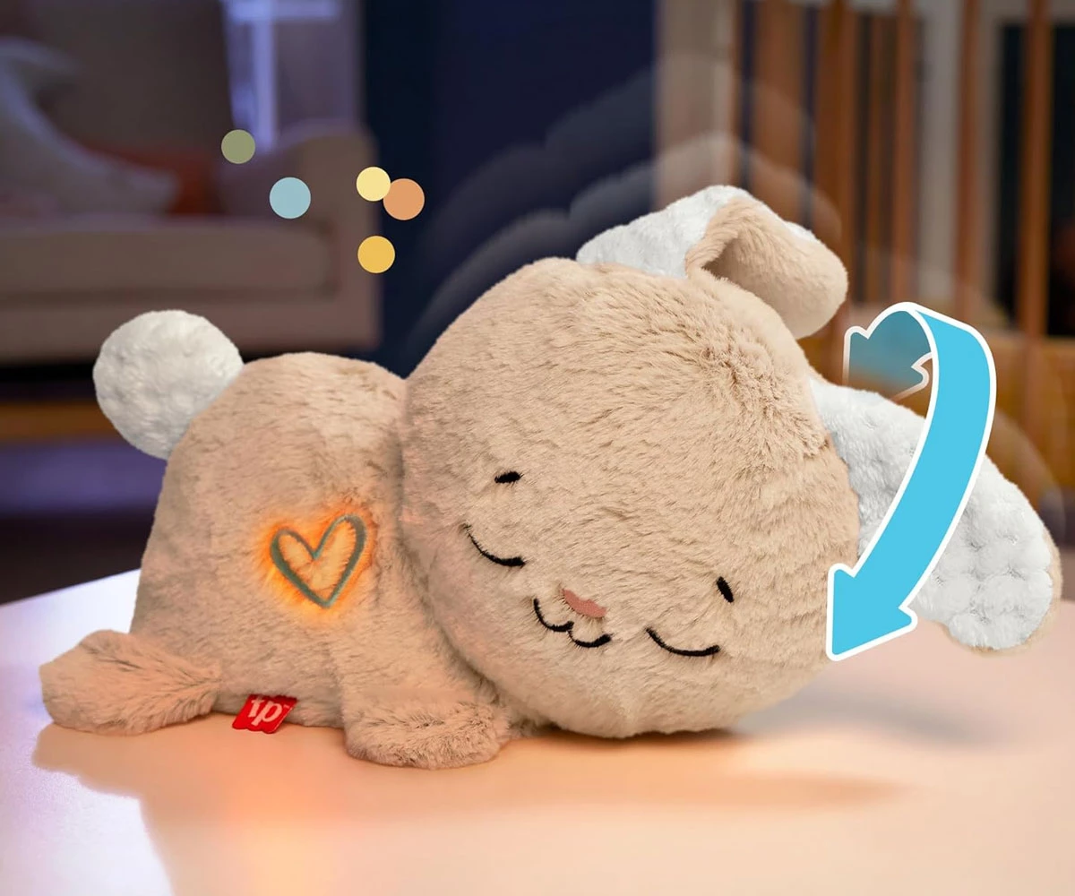 5 персонализирани успокояващи звукови опции за възпроизвеждане до 30+ минути: музика с нежни прозявки и хъркания, дълбоко дишане, шшшш звук, звуци от природата, бял шум;