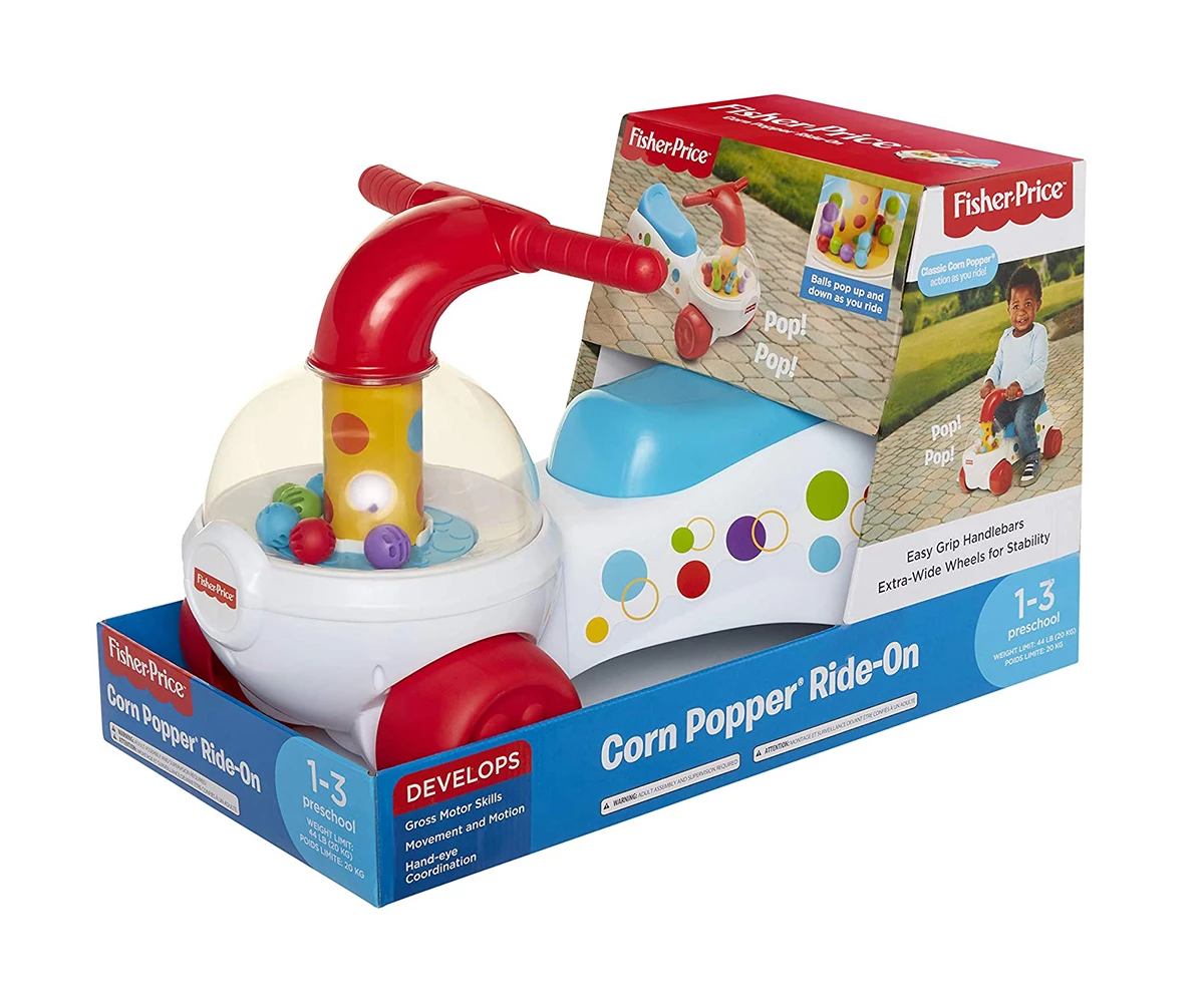 Цветни топчета от Pop-Corn ПОП, които ще изскочат, докато детето Ви кара с движение напред и назад;