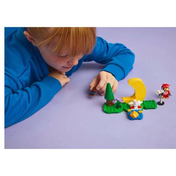 С този конструктор децата изграждат сцена на открито, вдъхновена от поредицата видеоигри на Animal Crossing;