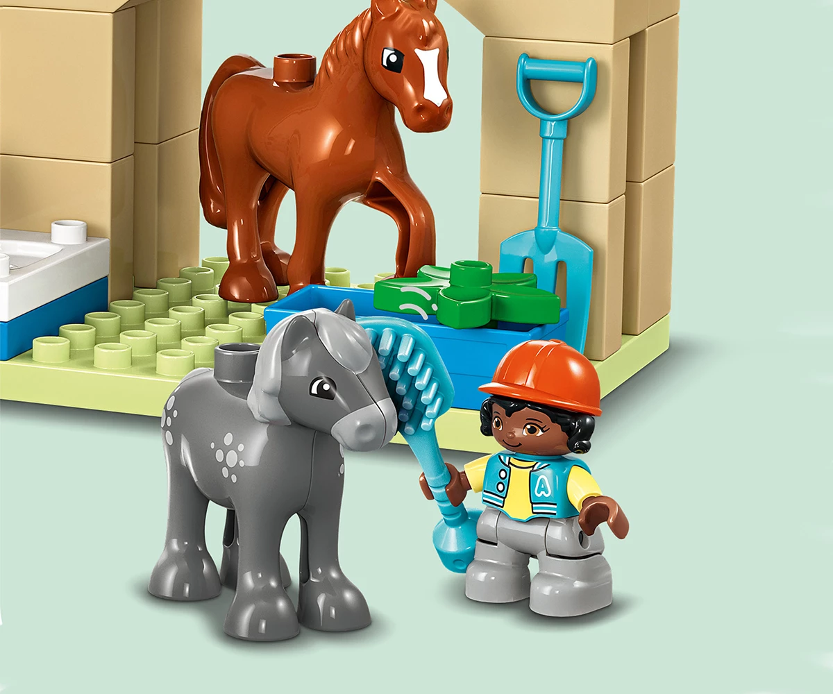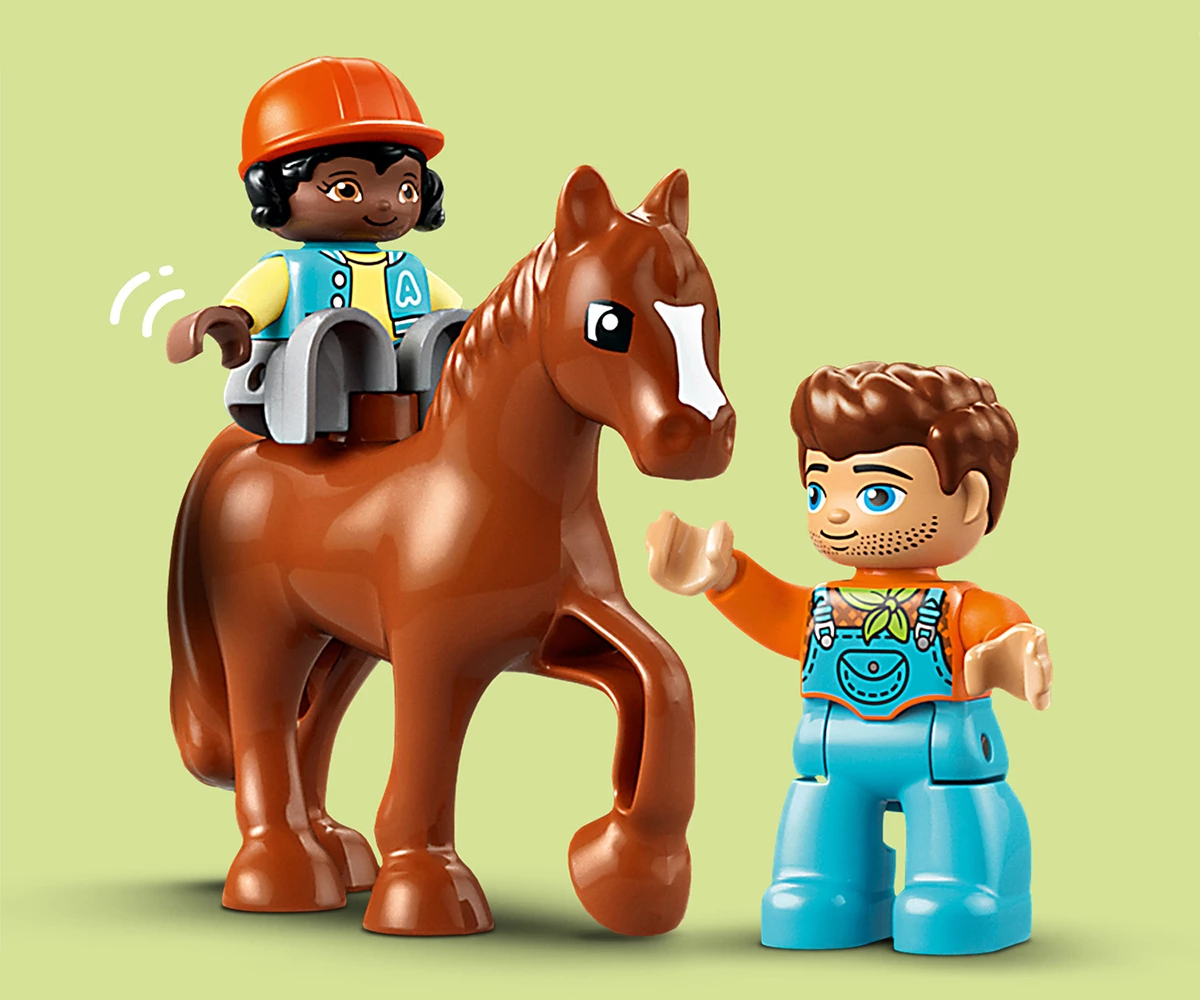 С множество аксесоари – фермата за малки деца има много елементи, които вдъхват живот на разказването на истории, така че децата в предучилищна възраст да могат да хранят животните и дори да почистват изпражненията на коня с лопата