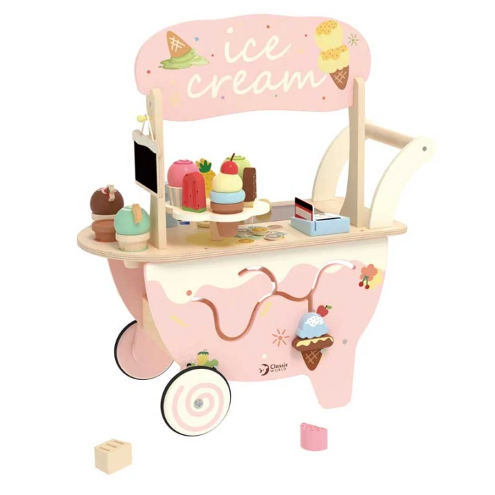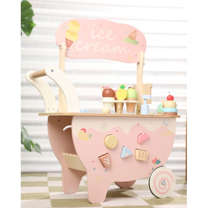 Удобна дръжка за бутане, което позволява на детето да я движи свободно из стаята – точно като истински уличен продавач на сладолед;
