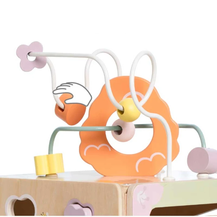• Играчката включва елементи за плъзгане, въртене и проследяване, които стимулират координацията и фината моторика;