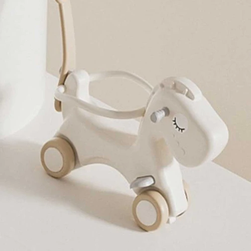 • Самостоятелна игра с кончето – след премахване на люлеещата основа, кончето се използва като стабилна играчка за свободна игра, която насърчава детето да изследва, бута, завърта и взаимодейства с него по естествен и безопасен начин;