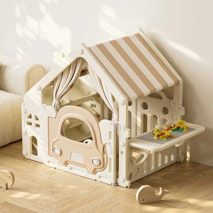• Къщичката разполага с вратички и отвори, които улесняват влизането и излизането на децата, както и насърчават ролевите игри;