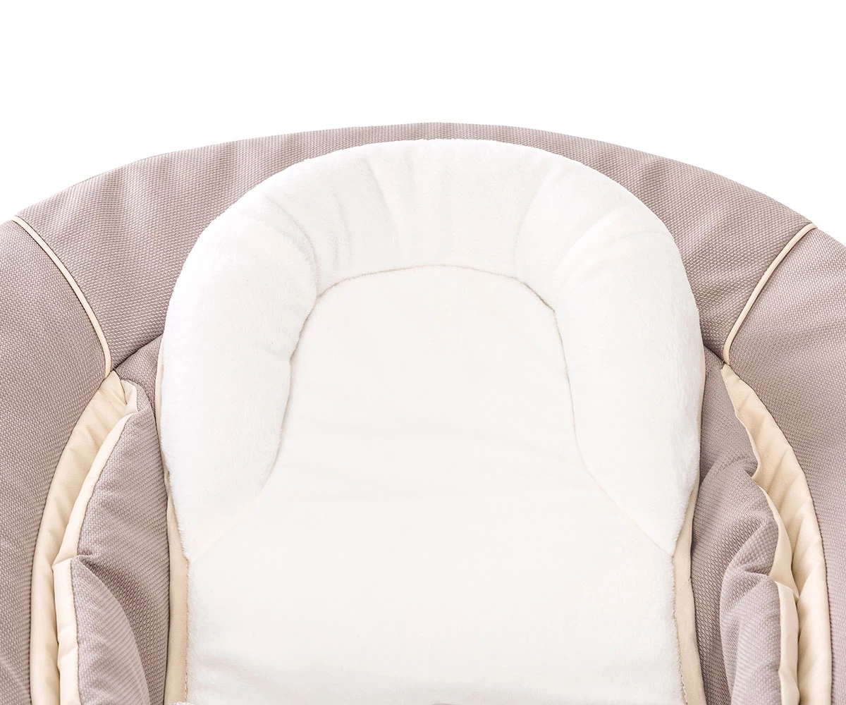 Благодарение на мекия редуктор за седалката, страничната подплата и подвижната възглавничка, предлага сигурна и ергономична позиция за лежане - както в режим шезлонг, така и като модул за столче;