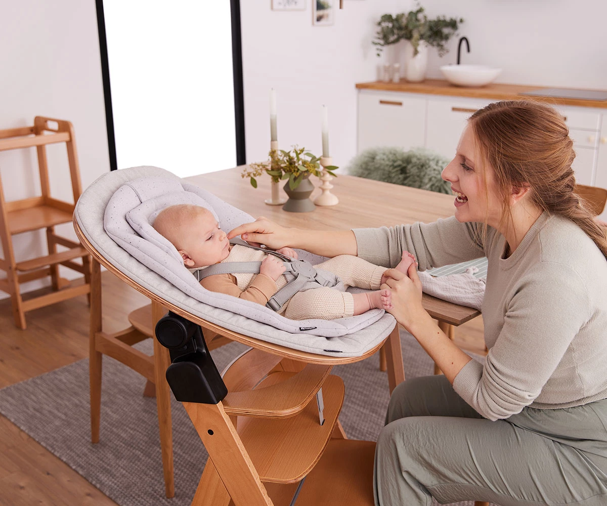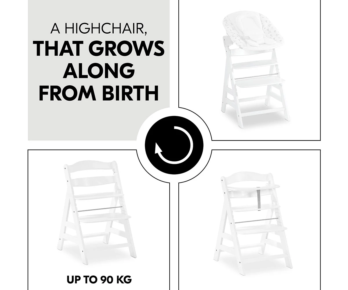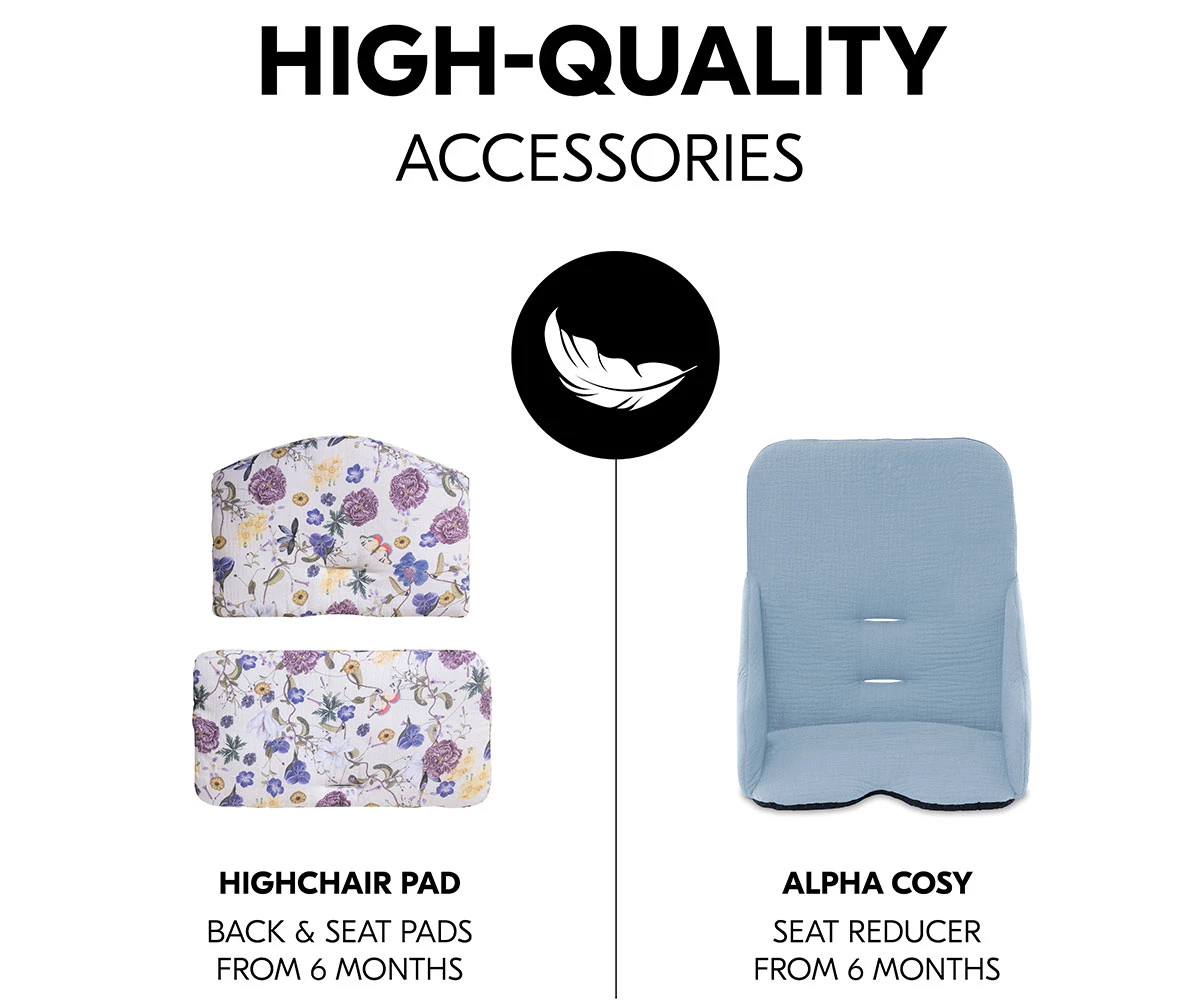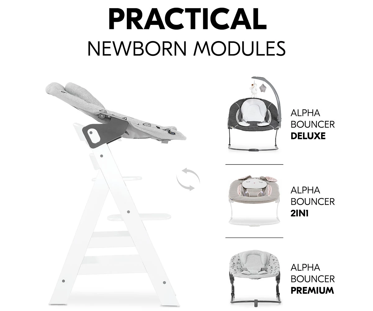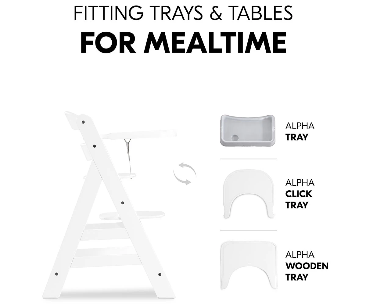 Alpha+ може да се комбинира с таблата Alpha Tray, което позволява използване като самостоятелно столче от 6-месечна възраст;