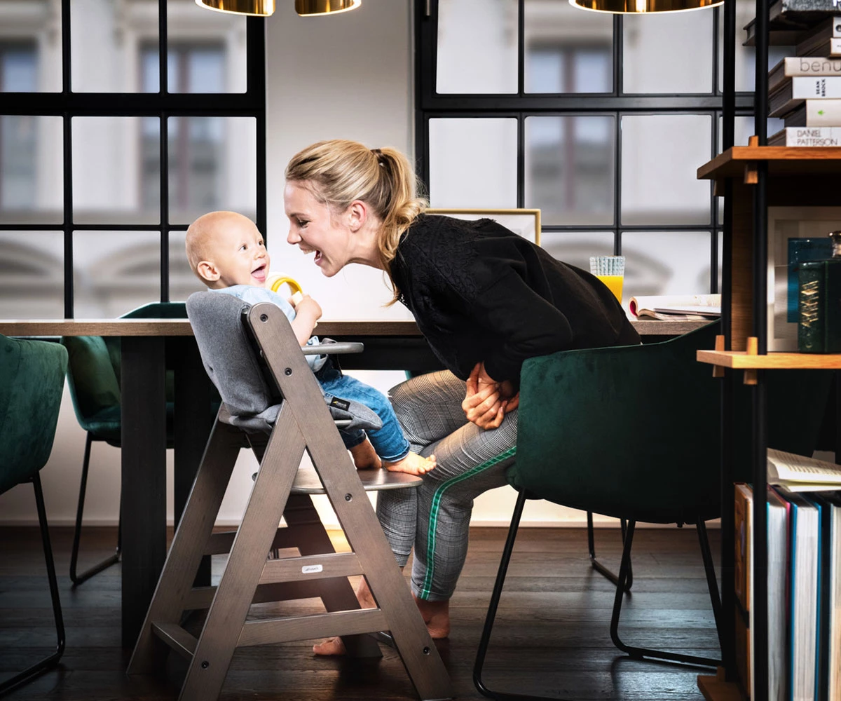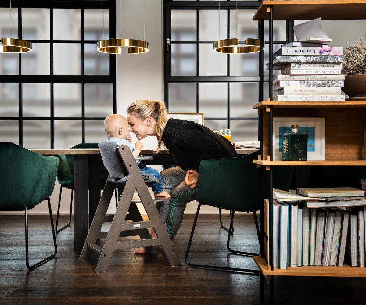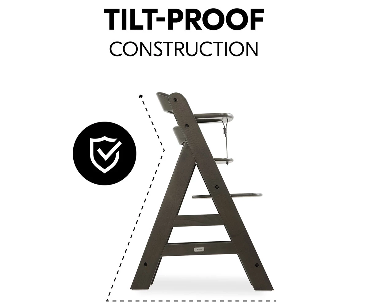 Ако детето се отблъсне от масата, столчето леко се приплъзва назад, вместо да се накланя;