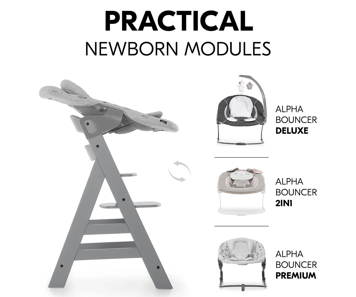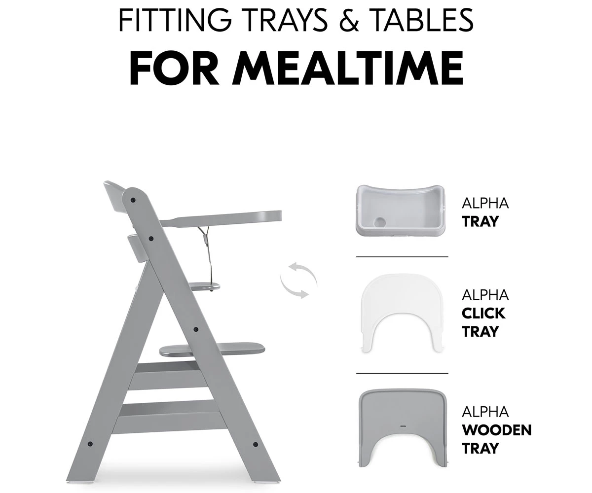 • Alpha+ може да се комбинира с таблата Alpha Tray, което позволява използване като самостоятелно столче от 6-месечна възраст;