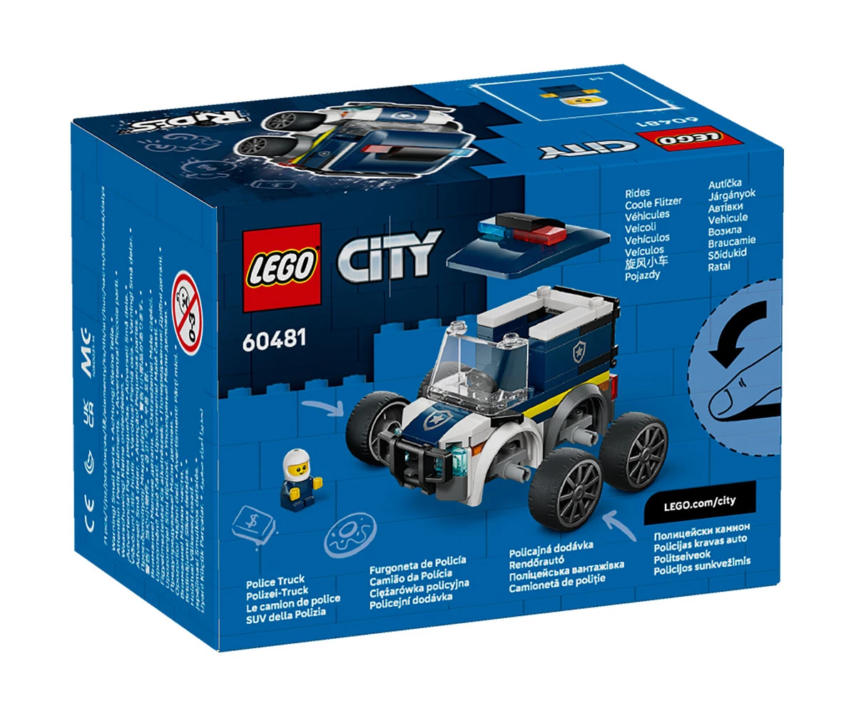 Този компактен, сглобяем полицейски камион с готини джанти, нископрофилни гуми, буфер, затворнически решетки и аварийни светлини предлага на младите конструктори забавен начин да опознаят света на LEGO City;