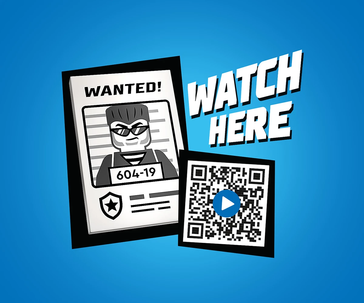 Включва плакат „Търси се“ – с разрешение на възрастен, децата могат да сканират QR кода в инструкциите за построяване или на кутията за забавно видео приключение с LEGO® City Police;