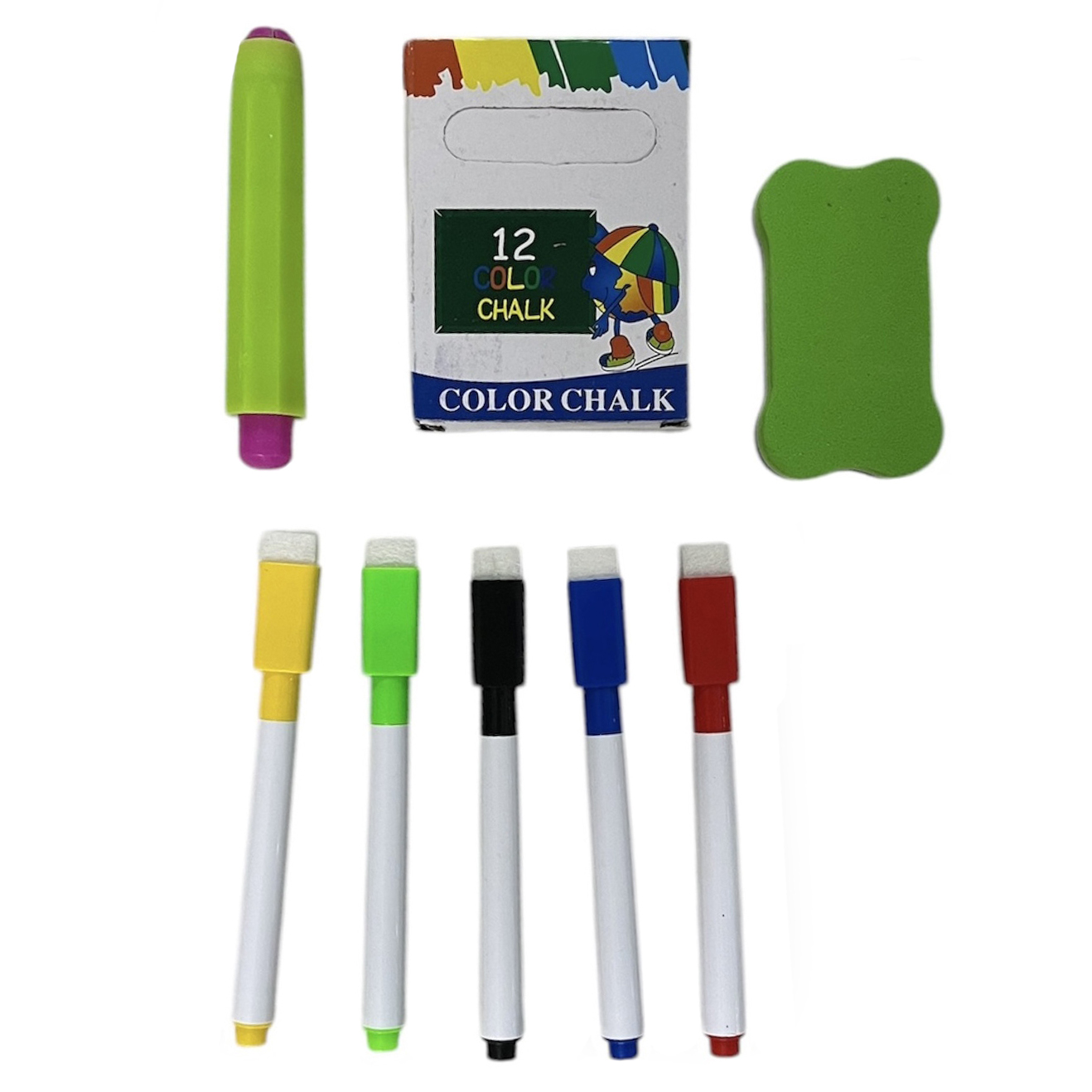 Включени аксесоари – магнити, цветни маркери, цветни тебешири и гъбичка за триене;