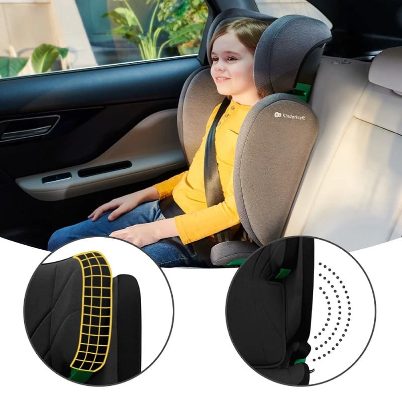 • Бустерна седалка с облегалка, тестевана при изключително стриктни условия за страничен и челен удар;