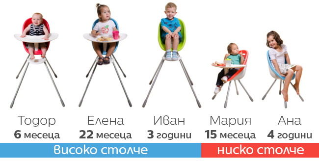 Може да се използва по 2 начина: - като столче за хранене: от 6 месеца (от момента, в който детето може да седи) до 3 години; - като детско столче – до 3-5 години или до 20 кг;