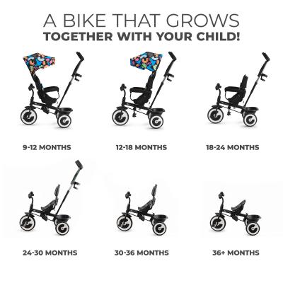 • Сенника, дръжката за родителски контрол и предпазния борд се отстраняват и играчката се трансформира в триколка за по-голямо дете;