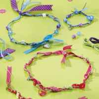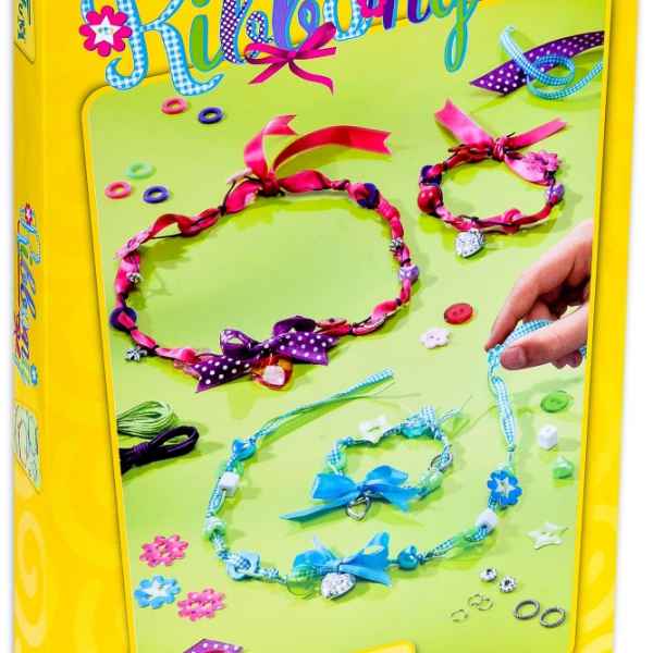 Колие и гривна, че защо пък не и пръстен – всичко можете да си направите, ако сте малка госпожица и имате този комплект с панделки, висулки, копчета и мъниста;
