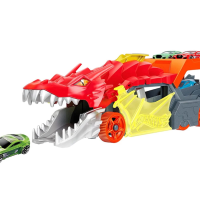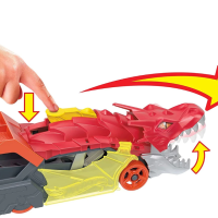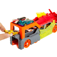Конекторите за писта в предната и задната част на звяра позволяват на децата да прикрепят писта Hot Wheels®, като се свържат към съществуваща конструкция, или да започнат нова. Този автовоз се предлага с една количка, но може да съхранява до пет (допълнителните колички се продават отделно);