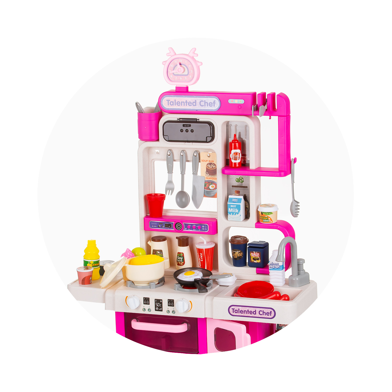 Мултифункционален и забавен кухненски комплект с различни аксесоари и реалистични ефекти, благодарение на които малките деца ще се забавляват часове наред и ще се почувстват като най-талантливите готвачи;