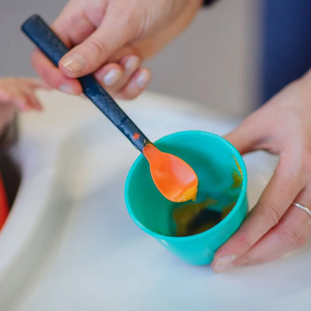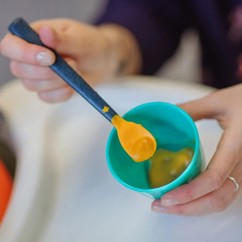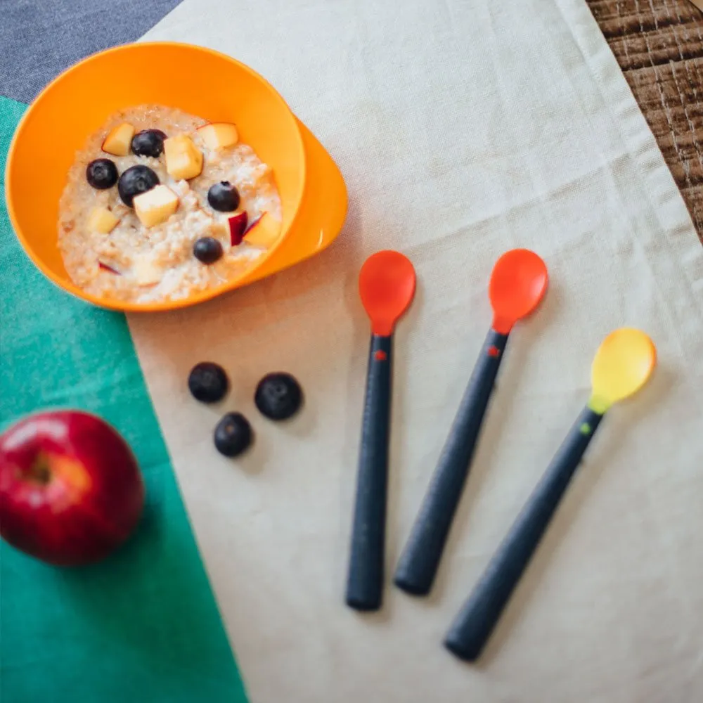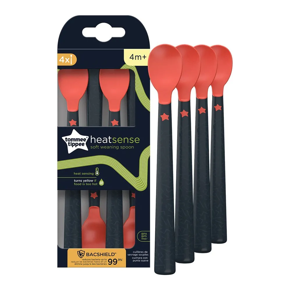 Цветът на лъжичките се променя от червен в жълт, ако храната е твърде гореща;