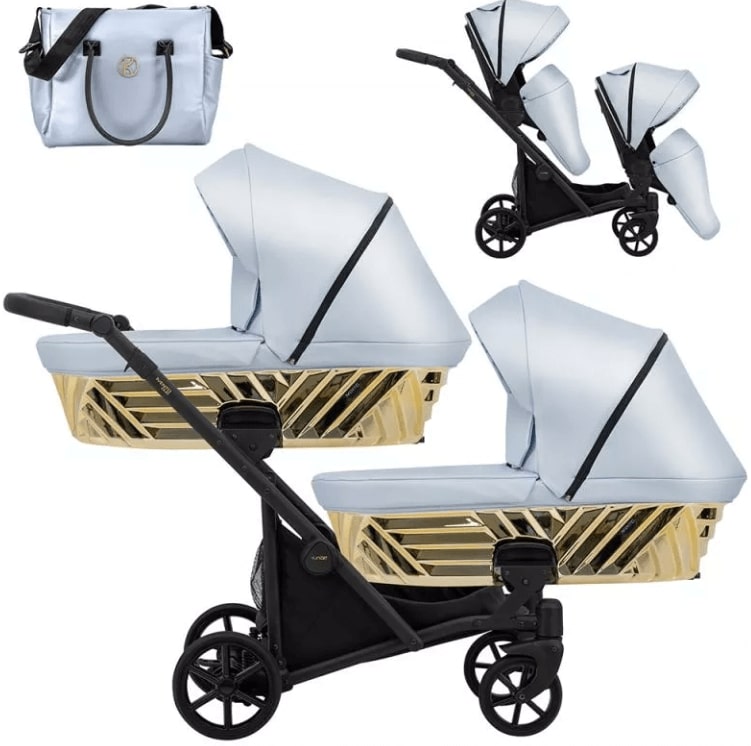 Бебешка количка за близнаци 2 в 1 Kunert Ивенто, Еко син металик