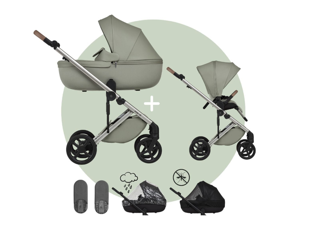 Съвместимо с рамата на количката, посредством адаптори, които са включени в комплекта;