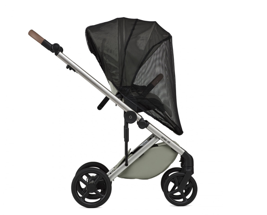 Въздухопропускливият сенник, изработен от плат, обогатен с UV филтър, предпазва бебето от пряка слънчева светлина и други външни фактори;