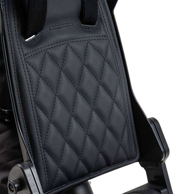 • Стилен дизайн в черно, диамантена нашивка с еко кожа на седалката и облегалката, кормило тапицирано с еко кожа;