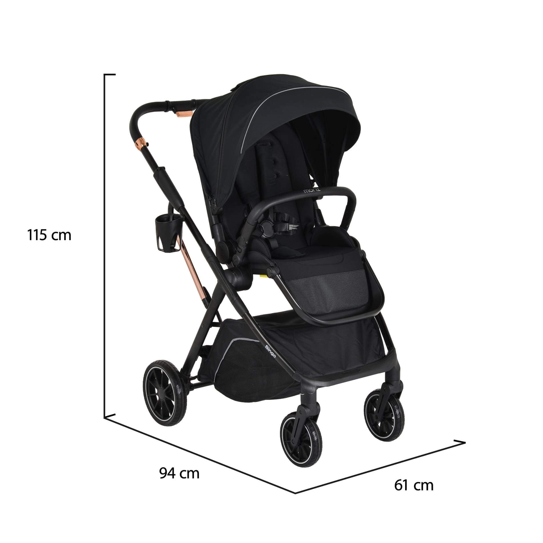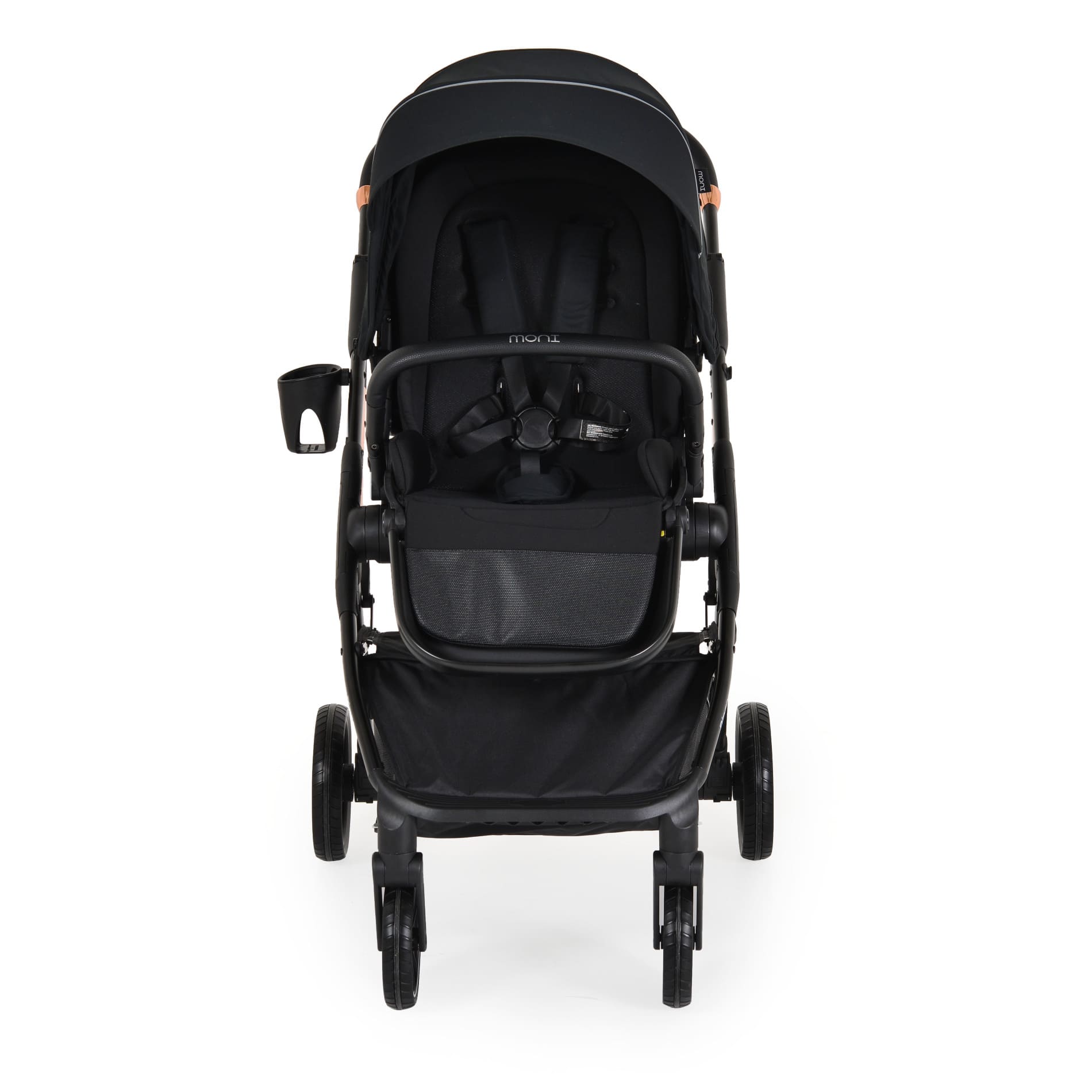 Предни колела с въртене на 360°, задни колела със свързана спирачка и амортисьори, осигуряващи допълнителен комфорт и стабилност при возене;