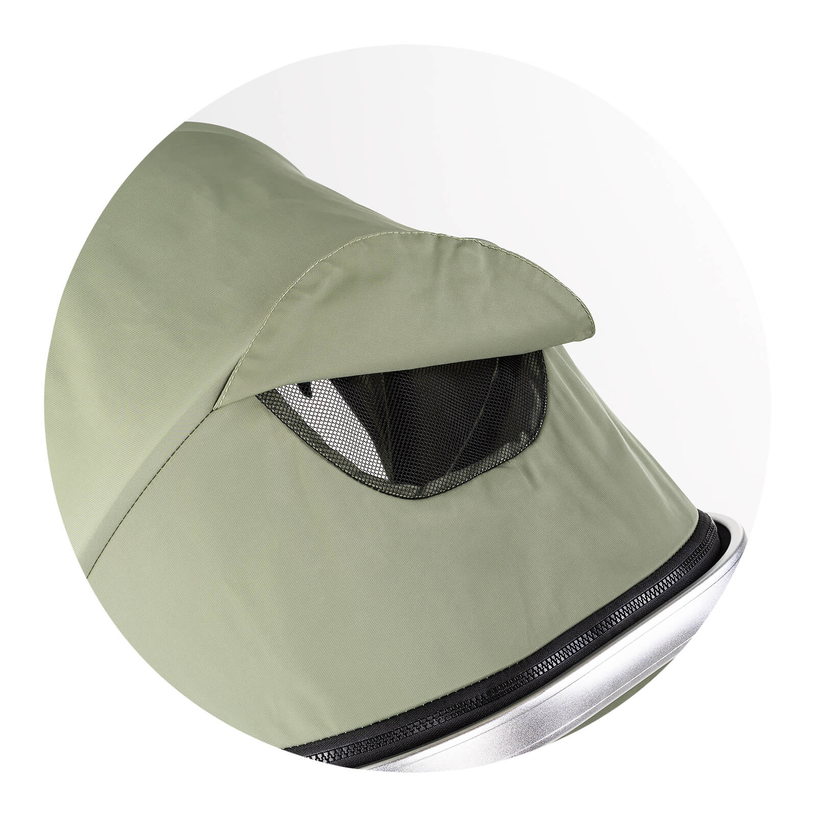 Голям регулируем сенник със сваляема козирка и прозорец за наблюдение на бебето;